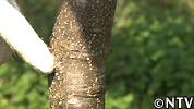 モモのシーズンが終わると栗の木に移動し、栗のイガに産卵。イガの上で孵化した幼虫が栗の実の中に入り、食べてしまう。