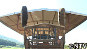 - 掘られた芋はベルトコンベアで自動的にあがり、コンテナに収められる。
