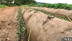 - 平山さんは、畝を高く設定しサツマイモを栽培している。
