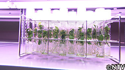 - 病気の無い無菌状態で栽培された苗を切り分け、さらに葉の部分を切り分ける。そこから新たな芽を出し生長する。