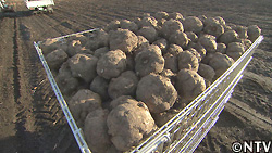 春に2年目を植えて、秋に収穫したイモ。小さくとも300グラム程度の種イモを植え付けるため、その秋にはほとんどのイモは1500グラム以上になり、すべて出荷できる。