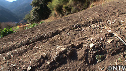 山間の傾斜地は降った雨が畑に溜まりにくいため、根腐れ病にかかる心配が少なかったが、段々畑の急な斜面では機械が入ることが難しく、手作業で一度に沢山の面積のコンニャクを作ることが難しかった。昭和50年代になると農家は荒粉の生産をやめて、生芋で販売するか、火力乾燥で加工した荒粉を販売するようになり、徐々に天日乾燥で荒粉を生産する人は減っていった。昔は125軒程があったものが、現在では5軒しか残っていない。