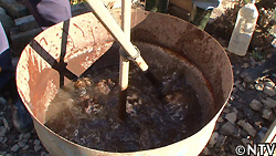 バタ練り機を使う前はDASH村と同様、生芋からコンニャクを作っていた。