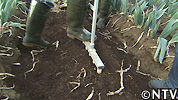 ネギ専用の植え替えの道具。ネギが曲がらず、真っ直ぐに生長するため、商品価値が上がる。穴の深さが一定でネギの生育が揃えられる。一度に9個の穴を開ける。