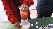 ⑤熟した実をミキサーにかけ、採種。沈んだ種のみを乾燥させる。