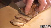 ※30℃くらいの温度で長時間燻製するため、乾燥がさらに進み、保存性も向上する。