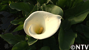 - サトイモの花は日本ではあまり見かけないが、カラーの花と似ている。