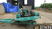 トラクターの後部に「モアコンディショナー」をつけて作業をする。