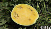 - 1991年(平成3年)に柳さんが、たったひとりで品種改良に取り組み、7年かけて改良し、品種登録したスイカ。大玉で黒皮、中身が黄色であることが特徴。