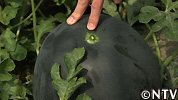 - 「玉返し」は、スイカの重さによる形の変形や、光りのあたり具合による変色や味の違いを防ぐために行うもので、手作業でスイカの玉を40~45度ほど回転させる作業である。