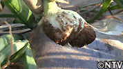 玉を大きく均等に付けるには、木をまっすぐ立てる事が大切という。