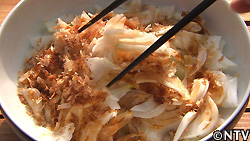 最も一般的なサラダ。薄くスライスし鰹節と醤油かポン酢をかけシンプルに食べる。