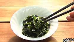 同じく名産の生海苔と白玉ねぎのスライスを混ぜ、甘酢で味付けをする。