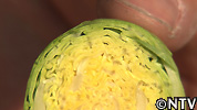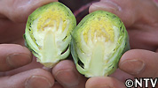 2月頃の寒い時期に芽キャベツを収穫すると、断面から樹液が滲み出てくる。これは寒さによって蓄えられた糖分だという。