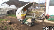 アスパラの収穫や運搬に最適なコンパクトな電動畝間作車。