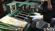 アスパラを22~27cmの長さに切りそろえ、自動的に重量による6段階の選別を行うアスパラ専用の選別機。