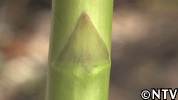 葉(鱗片葉):茎の節についている三角形の部分。ハカマと呼ばれ、若茎が伸びる時に先端部を保護する役目がある。