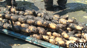 白石町のレンコンは泥付きで出荷しているため、レンコン畑の泥をレンコンにのせ陸へ運ぶ。