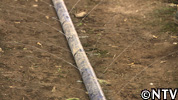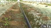- きゅうりの根は、土の浅いところを横へ横へと伸びていくため、株元から離れた通路にも、チューブを置いて、根が効率よく水を吸収できるように工夫している。