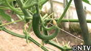実が葉で隠れてしまうと色がつかず、きゅうり本来のパリッっとした食感が出にくくなる上、ストレスを感じ曲がりやすくなるという。
