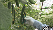 きゅうりは生長がとても早いので、朝と夕方の2回収穫する。