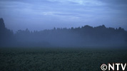 →昼間の日射で温められた斜面上昇風が、夜間、川で水分補給しつつ上昇し、霧を生む。