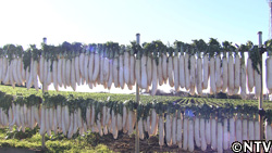 海岸や道路沿いに、たくあん用に大根が干してある様子は、三浦市の冬の風物詩として有名。