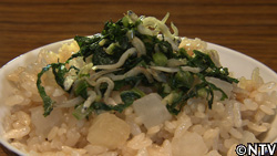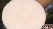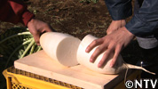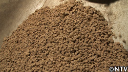 川島さんの作業場で、米ぬかと合わせ、小さく固めて肥料にして大根の畑に入れている。