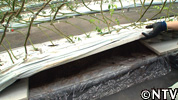 その上に、100万分の1ミリサイズの穴が空いた特殊なフィルムを敷き、そこにトマトの苗を置く。