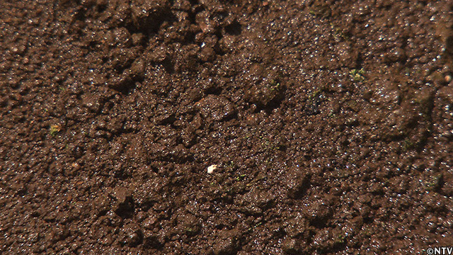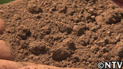 数百万年に渡って富士山などの火山が噴火を繰り返し、積もった灰でできた関東ローム層は、土が何層にも重なっていて、富里の土は、上から30cm程は水はけの良い『黒ぼく土』。雨が降った後、水たまりが残っていると病気になりやすかったりと、乾燥した環境を好むスイカの栽培に適している。