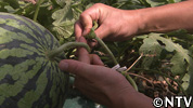 スイカ栽培歴45年のベテラン農家。200人ほどの会員がいる富里市のスイカ部会・部会長でもある。大玉スイカの他に、小玉や種なし、黒いスイカなど様々な種類のスイカを作り、年間の収穫量は2万4千個ほど。