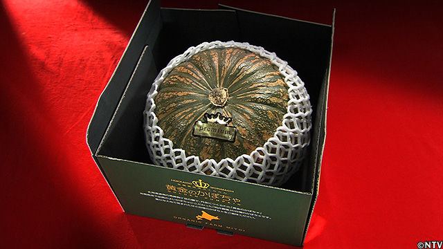 全体がまんべんなくオレンジ色になると、糖度が隅々にまで回ってる証拠で、糖度は25度程度に。しかし、「黄金のかぼちゃ」になるのは、100玉のうち、わずか2~3玉のみで、その希少さから、1玉6000円で販売されている。