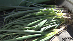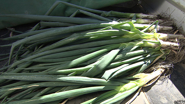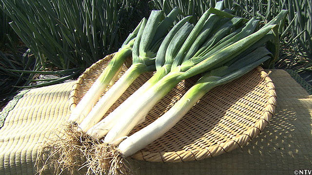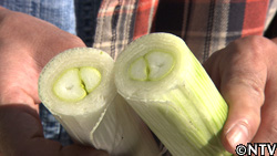一般に販売されている長ネギのおよそ3倍もの太さがある。