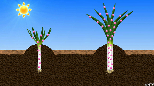そこで、柔らかくて甘い・白い部分を長くするため、ネギの生長に合わせて土を被せ、日光に当てないように栽培すること。専用の機械で行うのが一般的。