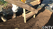 - 普通の畑につくった畝に「穴あけ棒」で、30~40cmの穴をあける。