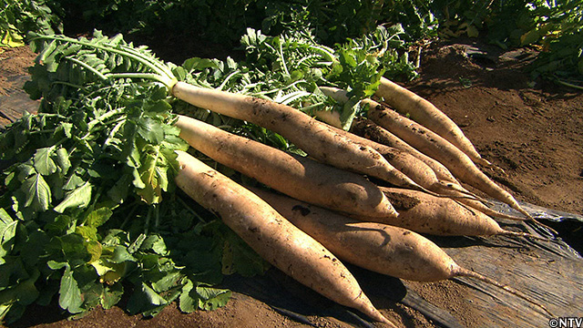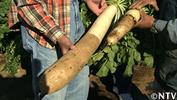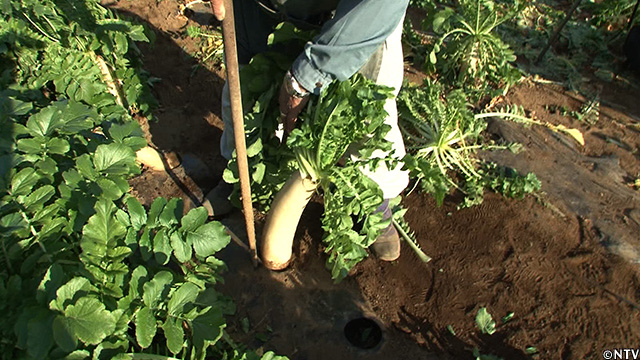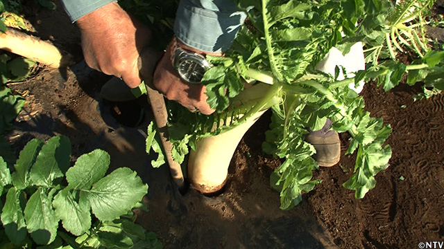 地中深くに大根が伸びていることから、収穫は大変な重労働。