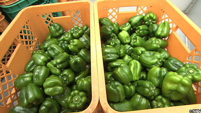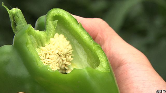 ピーマンは、大きさや色だけでなく、固さが重要である。