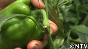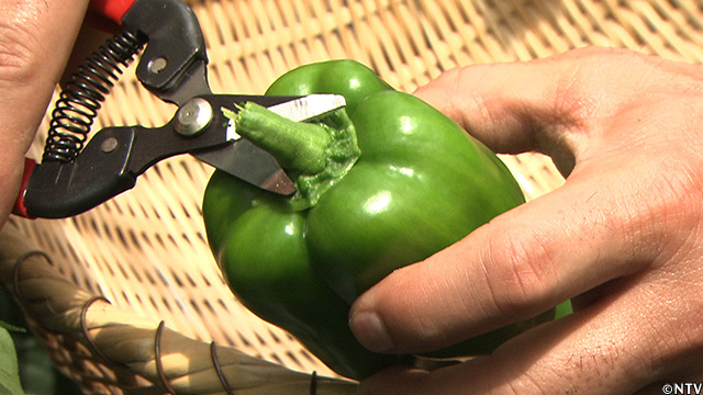 大きく育ったピーマンは収穫前に木になっている状態から、自らの重みで落ちてしまうことがあるため、収穫する絶妙なタイミングが大事。