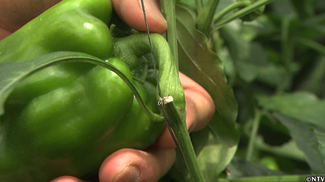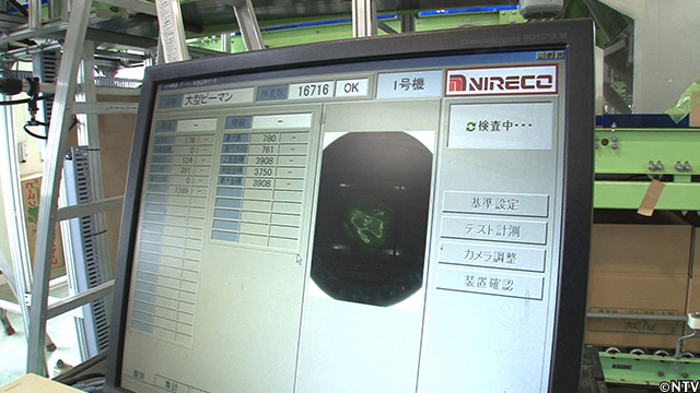 その後、2011年に導入された最新機器によって、10秒間に30個のピーマンの表面積を測る。