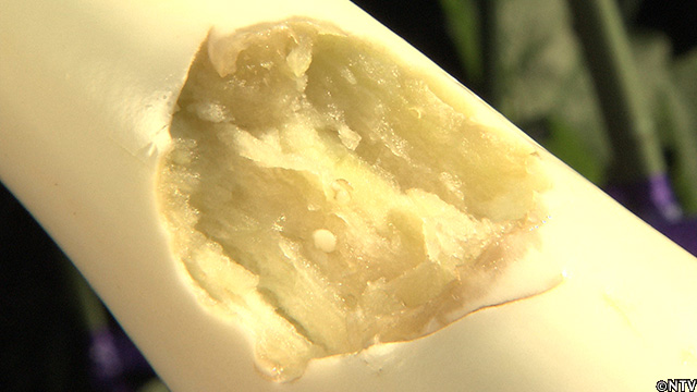 白ナスの皮の厚さは、日本人に最も親しまれている「千両二号」(紫ナス)の約3倍。