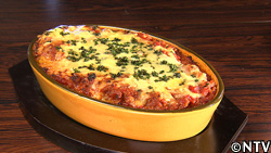 - ミートソース、チーズ、パセリを乗せて180℃のオーブンで15分焼いたら出来上がり。