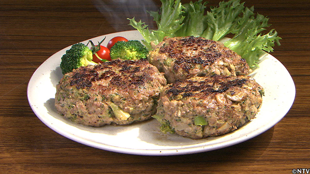 合い挽き肉、炒めた玉ねぎ、塩コショウ、牛乳、卵黄、パン粉を入れてよくこねたら、(2)を入れて再び混ぜ合わせる。