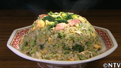 ベーコンとみじん切りにしたブロッコリーの茎、ご飯を入れ炒める。