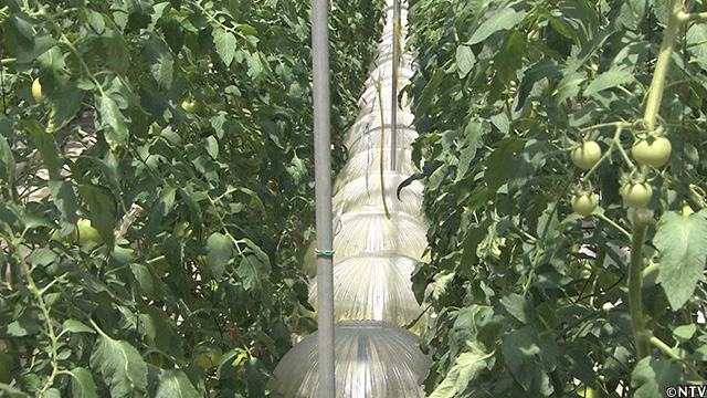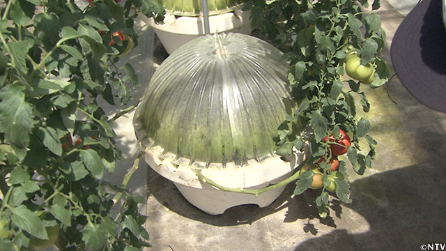 - 樽トマトは、土ではなく、ヤシの繊維(ヤシガラ)のみで、栽培されている。