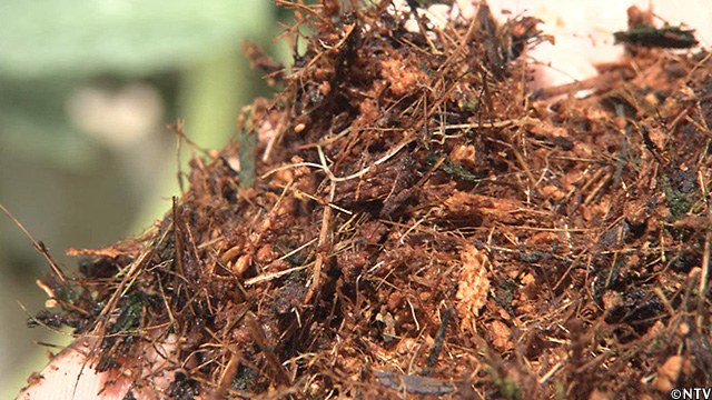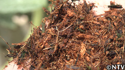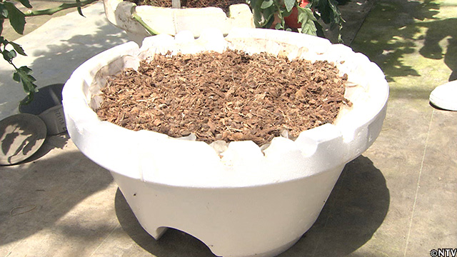 - ヤシの実の外側は繊維の集まり。これを砕いて土の代わりにしている。