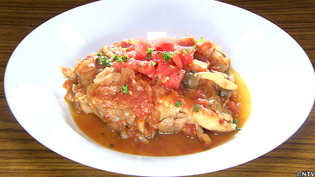 - 最後に塩コショウで味を調え、粗みじんの生トマトとみじん切りしたパセリをふりかける。