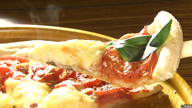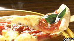 - 220℃のオーブンで7分焼き、仕上げにバジルを散らす。