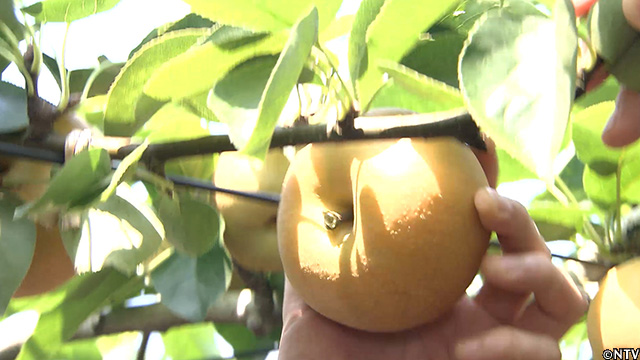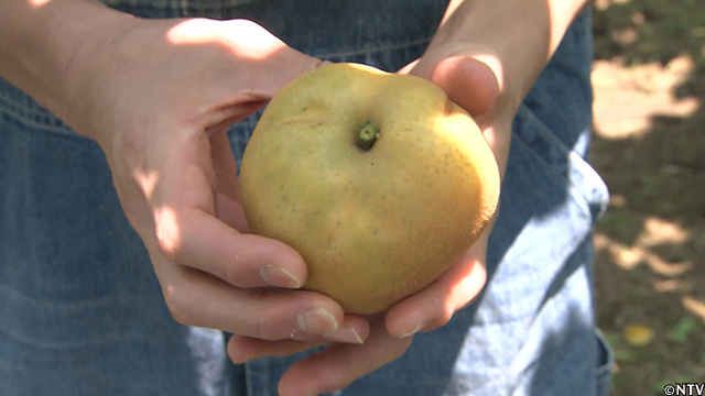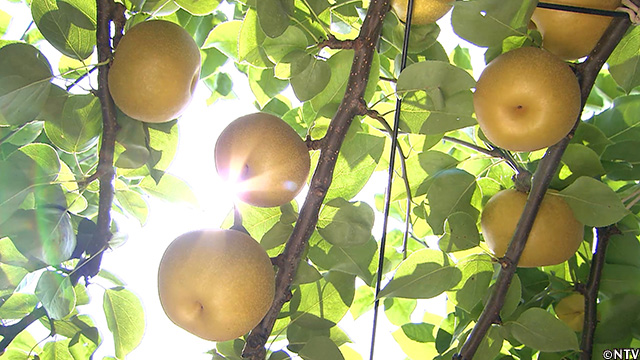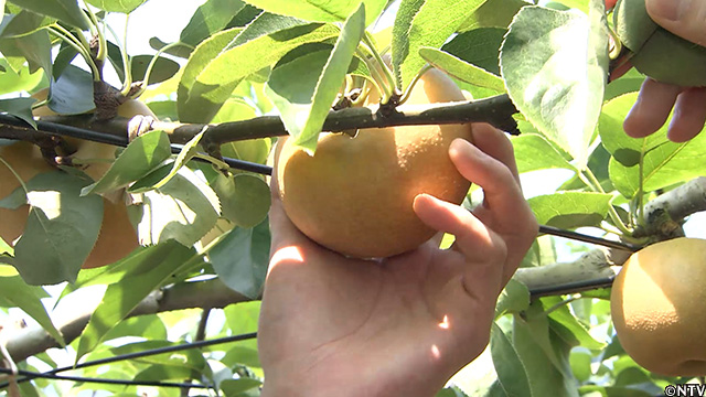 梨の実は適度に太陽が当たることで、デンプンが活発に働き、甘くなる。