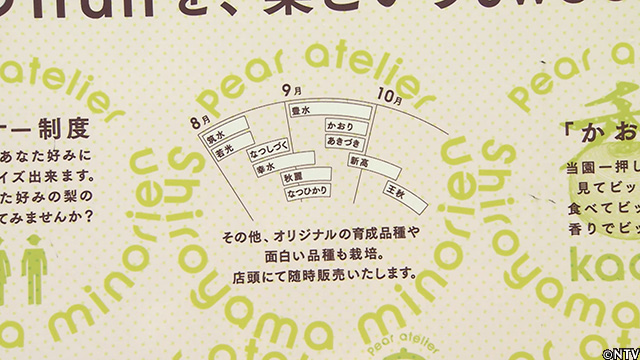 梨の品種は100品種以上あるが、その1つ1つは旬が約2週間と短いため、實川さんは収穫時期を計算し、およそ3ヶ月間梨が食べられるようにしている。