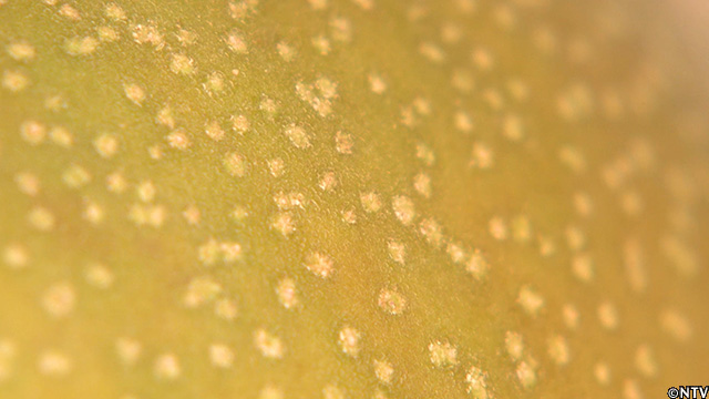 それを防ぐため、果点コルクがカサブタのように穴のフタとなり、梨の水分を実の中に閉じ込める。